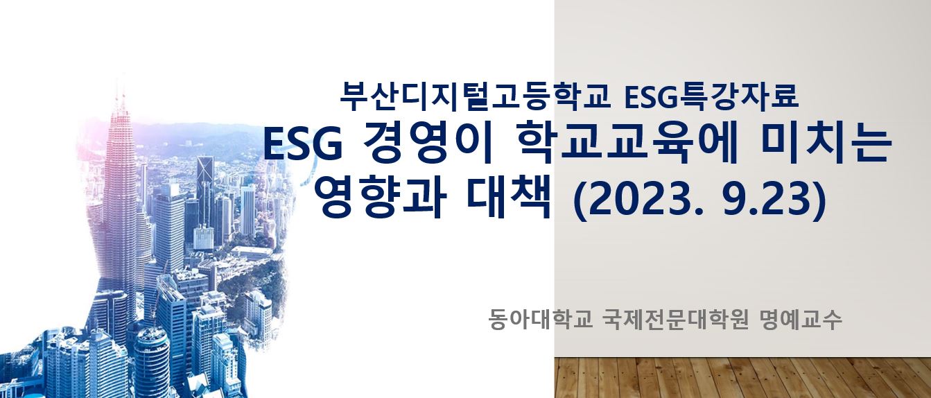 부각된 시점에 맞추어 ESG경영과 관련된 수업과 전문적학습공동체를 실시함.