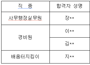 교육공무직원,배움터지킴이 최종합격자 명단을 아래와 같이 발표합니다.
