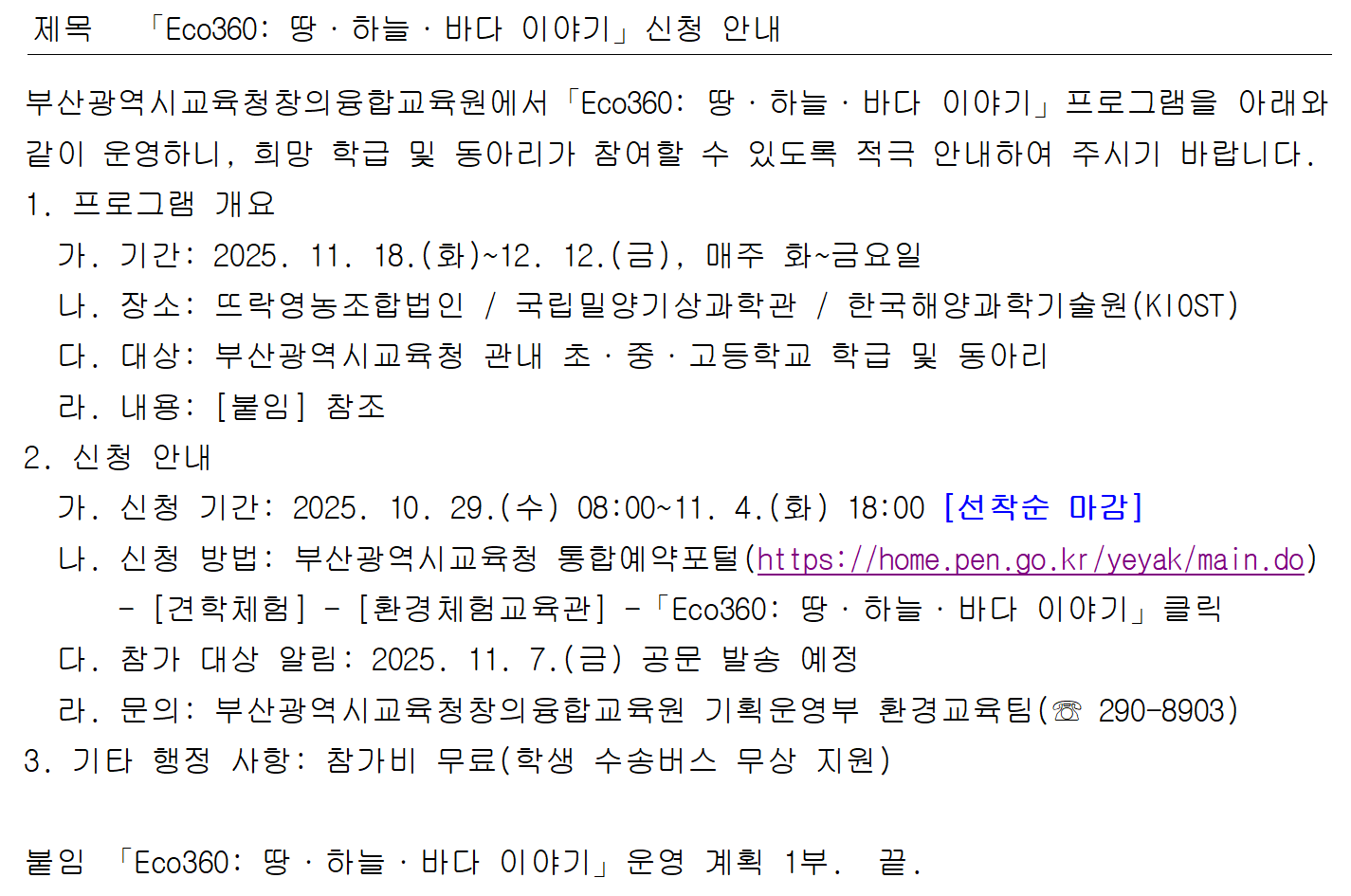 「Eco360: 땅·하늘·바다 이야기」신청 안내