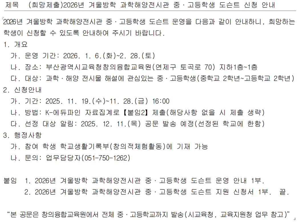 (붙임1)2026년 겨울방학 과학해양전시관 중·고등학생 도슨트 운영 안내.hwp