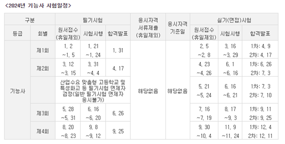 2024학년도 국가기술자격 기능사 정기 시험 일정
