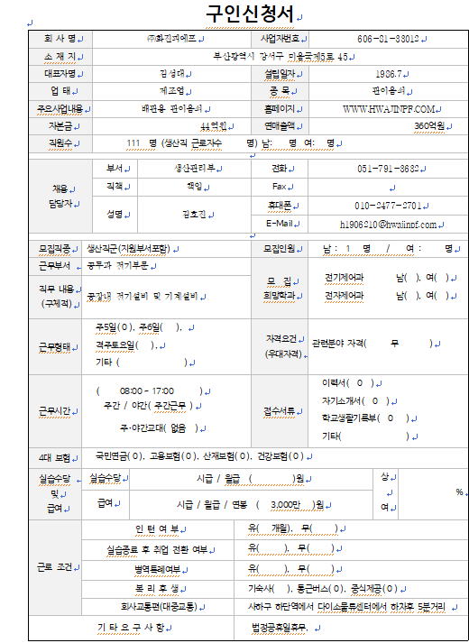 [채용공고] (주)화진파엔에프_공무과 전기부문