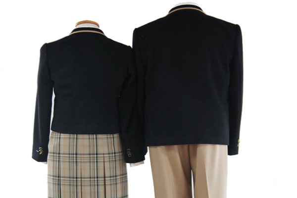 상의● 디자인 테일러드카라 싱글 3버튼 카라끝+아래주머니 입술 - 베이지 배색 학교 와펜 부착/ 학교 고유 단추 부착 ● 색상 및 원단 몸판 - 검정색 방모 원단 배색 - 베이지 개버딘 원단 |