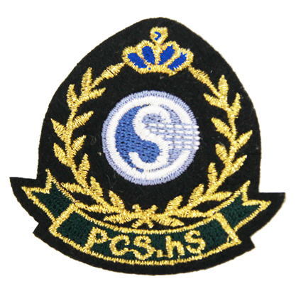 학교 와펜● 디자인 검은 바탕에 학교 로고 중앙 부착 하단에 진초록 바탕에 학교 이니셜 상의는 가로세로 : 5.3cm 니트 조끼는 상의와펜의 80% 사이즈 |