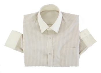 남학생 셔츠● 색상 및 원단 몸판 - 베이지 줄지 원단 배색 - 아이보리 원단 |