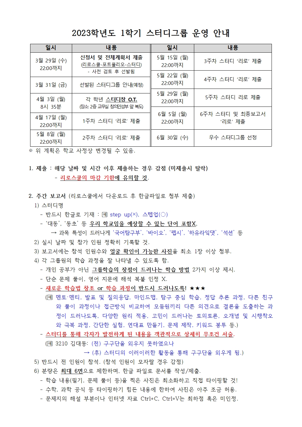2023학년도 1학기 스터디그룹 운영 안내