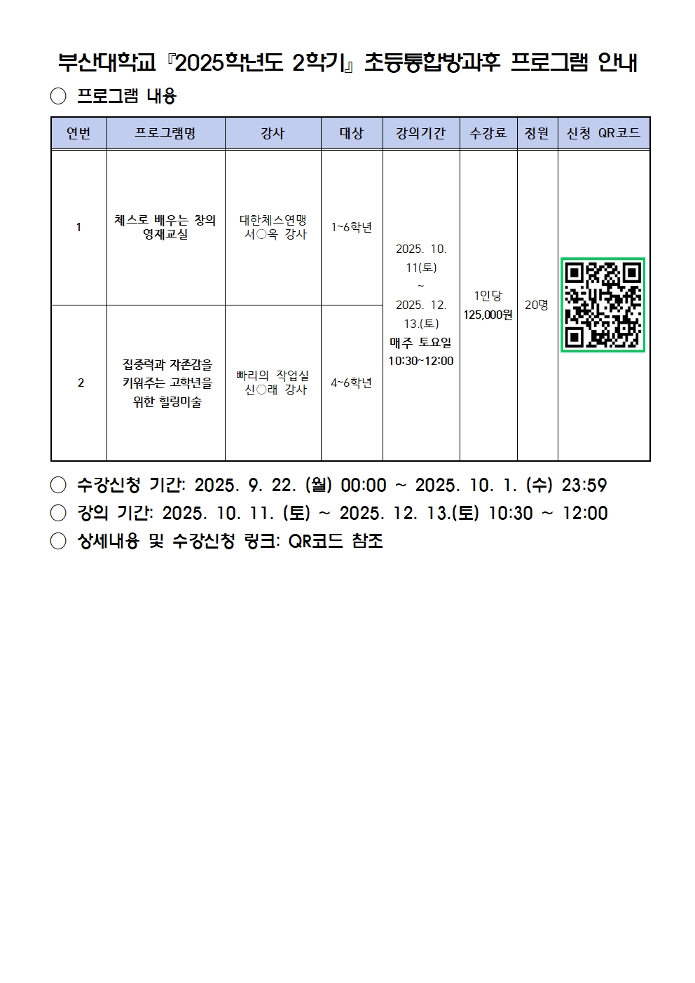 부산대학교『2025학년도 2학기』초등통합방과후 프로그램 안내