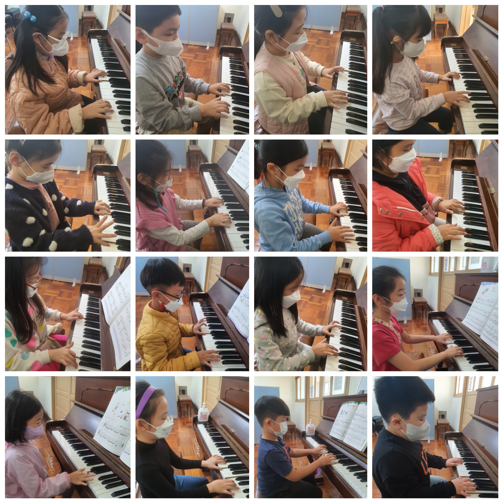 한명씩 레슨을 받으며 레슨 차례가 오기전까지 책상에 앉아 스스로 음악이론 교재와 계이름 교재를 풉니다.
