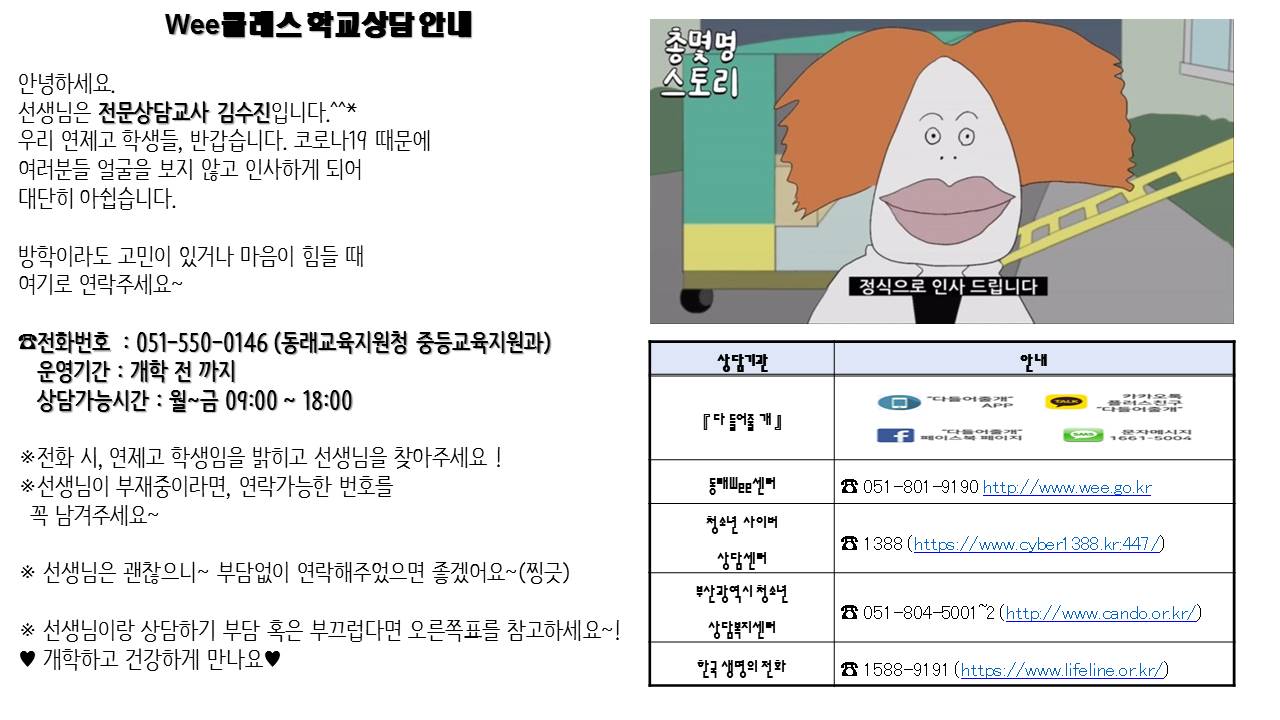 개학 전 학교상담 안내합니다.