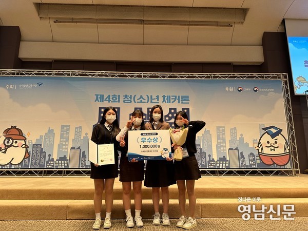 부산 연제구 연제고등학교(교장 김광수)는 이 학교의 ‘베르띠’ 팀(2학년 박윤설, 서채은, 전지해, 조수빈)이 지난 11월 4일 제4회 청소년 체커톤에서 우수상을 수상했다고 8일 밝혔다.