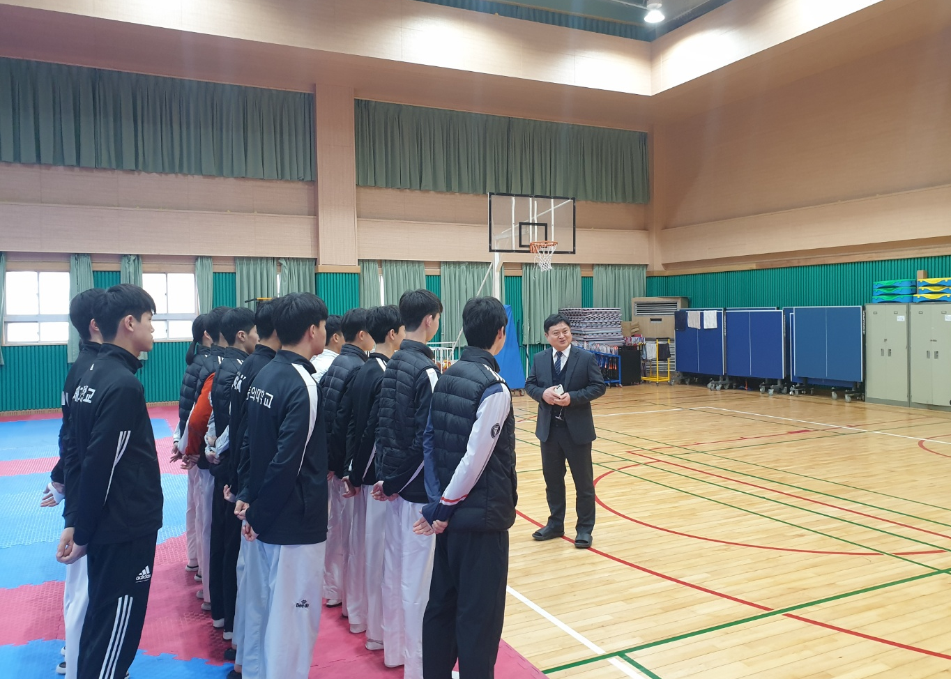 임재항 교장선생님께 첫 인사를 드렸습니다.