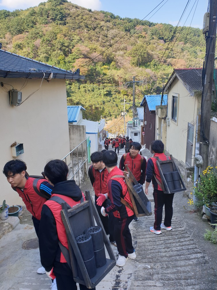 올해로 11년째 이어져 오고 있는 연제고등학교의 대표 활동인 사랑의 연탄 기부 및 연탄 배달을 11월 1일(토) 9시 30분부터 12시까지 물만골에서 실시하였습니다. 연탄을 처음 만져보는 학생과 배달을 통해 값진 경험을 한 학생, 어려운 이웃에 대해 다시 생각해 보는 학생 등 모두 연탄 배달 행사를 통해 좋은 경험을 하였습니다.